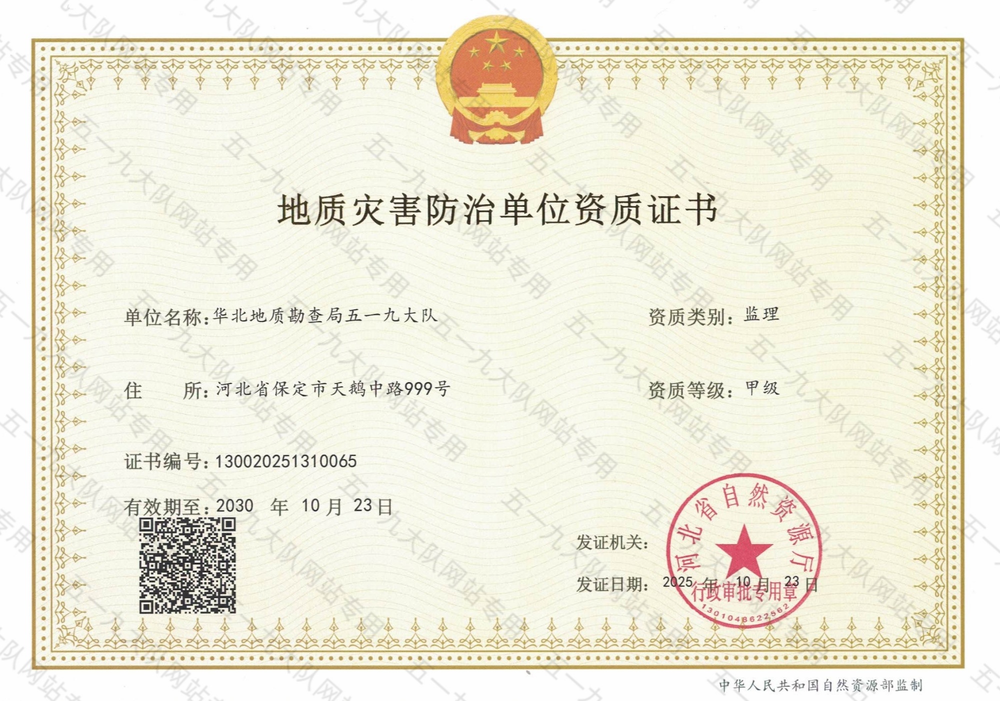 地质灾害防治单位资质证书(监理甲级)