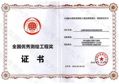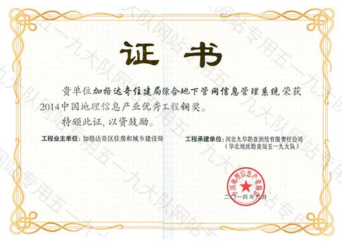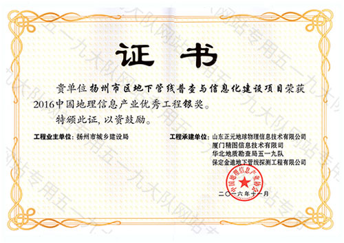 扬州市管线地理信息工程银奖